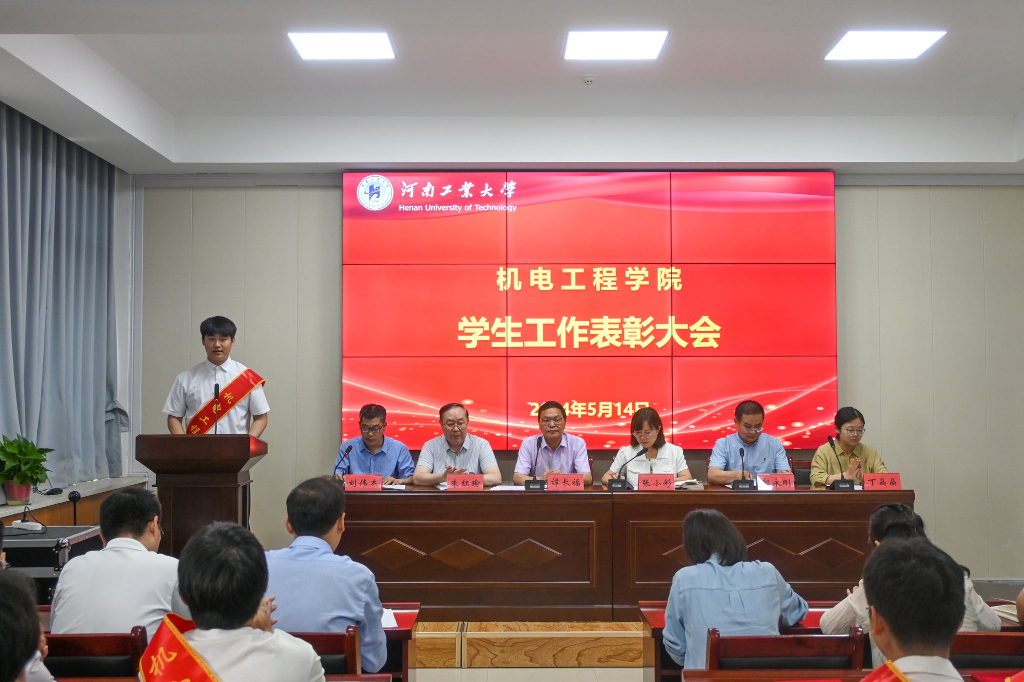 向受到表彰的先进集体和先进个人表示热烈祝贺,并总结了过去一年学生在学风建设、科技创新、团学活动、运动会等方面取得的成绩。希望今天受表彰的个人珍惜荣誉,再接再厉;希望全体学生以他们为榜样,积极进取,努力学习,不断超越自我,勇攀高峰,勇于担当,早日成为栋梁之才!