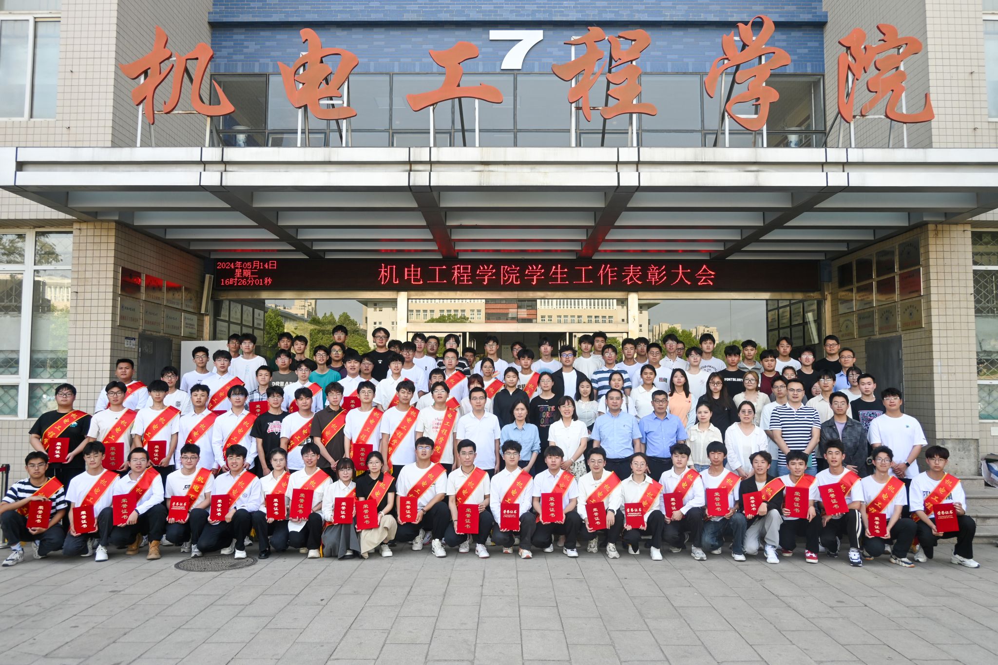 先进个人的决定》。对校先进班集体、五四红旗团支部、十佳优良学风标兵、十佳自强标兵、十佳创新创业标兵、三好学生、优秀学生干部、优秀共青团干部、优秀共青团员及优秀运动员、教练员、志愿者和通讯员等荣誉称号获得者进行了表彰,与会领导为受到表彰的先进集体和先进个人颁发奖状并合影留念。