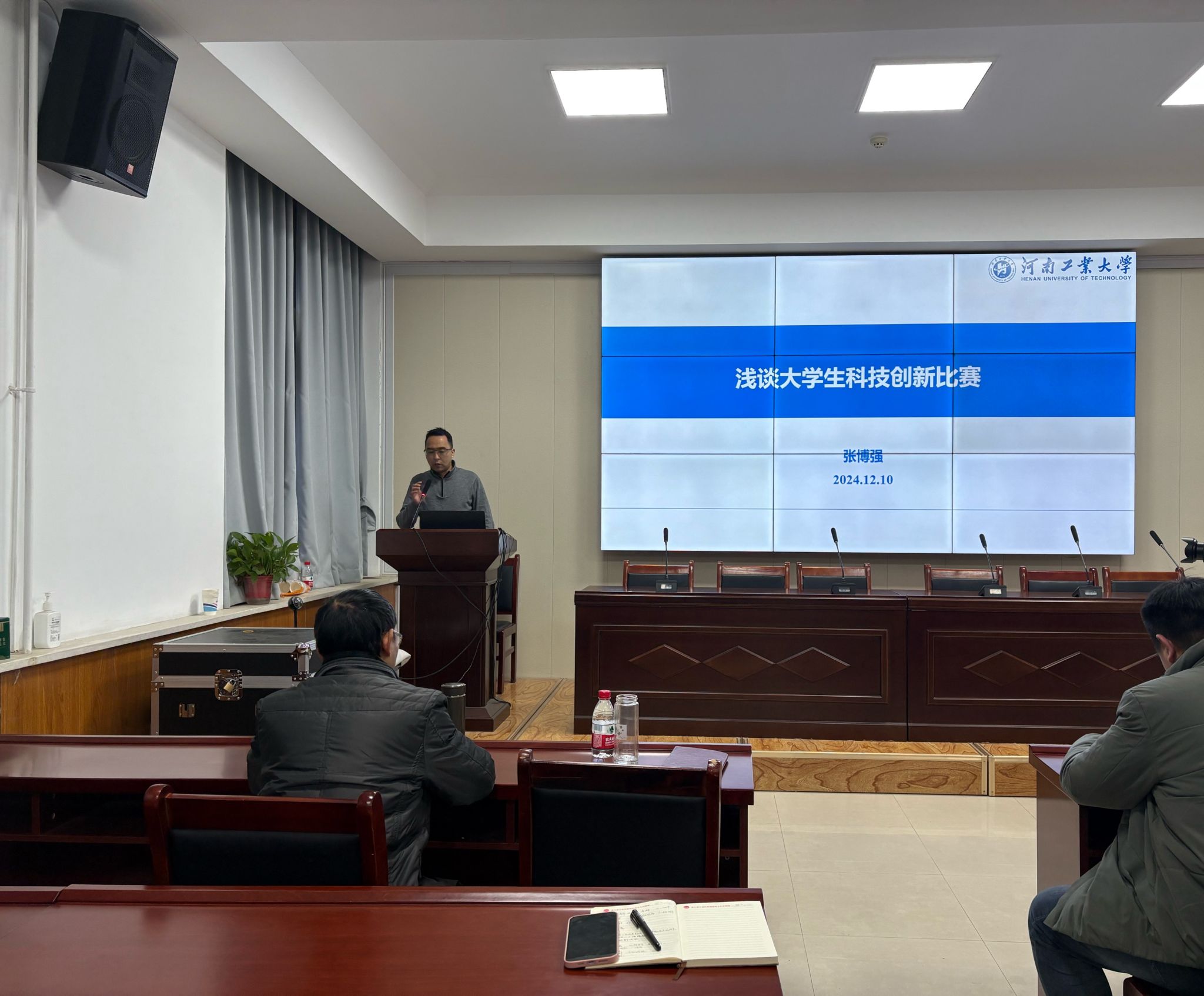 张博强从大学生科技创新分类出发,结合其过往指导竞赛的丰富经验,生动展示了多个参赛项目案例,并针对竞赛的选题策略、项目的可行性分析、创新亮点挖掘以及PPT展示技巧等方面给予了详尽而实用的指导。赵治华回顾了自2019年以来,指导学生征战各类竞赛的心路历程和参赛心得,激励在座师生勇于探索未知,直面挑战,积极投身于科技创新的浪潮之中。