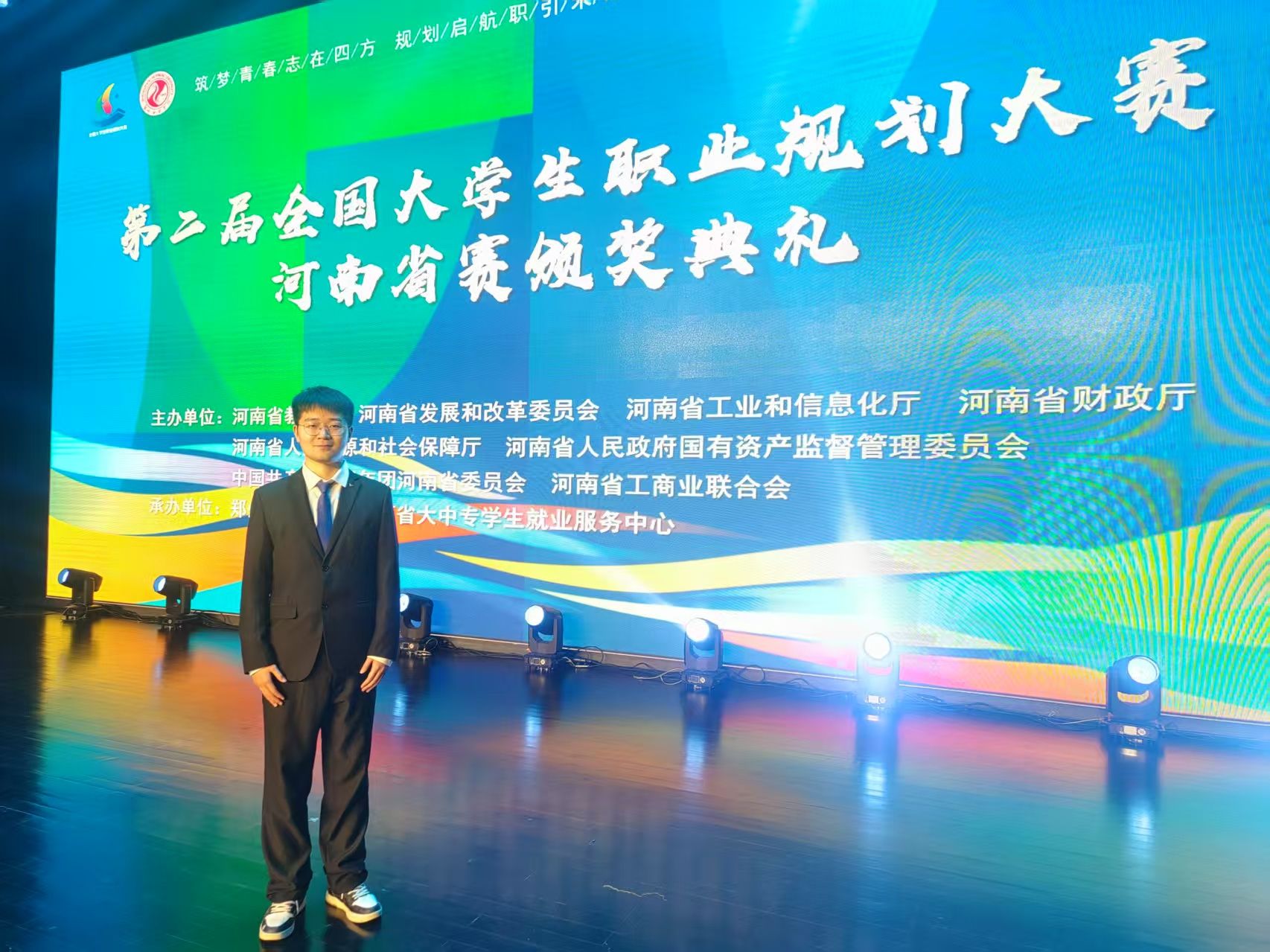 2021级本科生周泽阳凭借作品《芯向世界,未来已来---致力成为支持“中国芯”的芯片工程师》,在就业赛道高教组中脱颖而出,勇夺金奖。