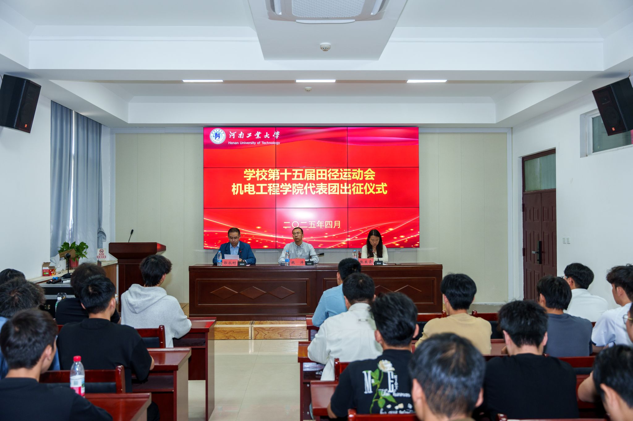 在惟明楼7224捷赛厅举行校第十五届田径运动会动员大会。院党委书记魏涛、副院长郭永刚、全体辅导员、学生运动员及教练员参加仪式,会议由院党委副书记张东霞主持。