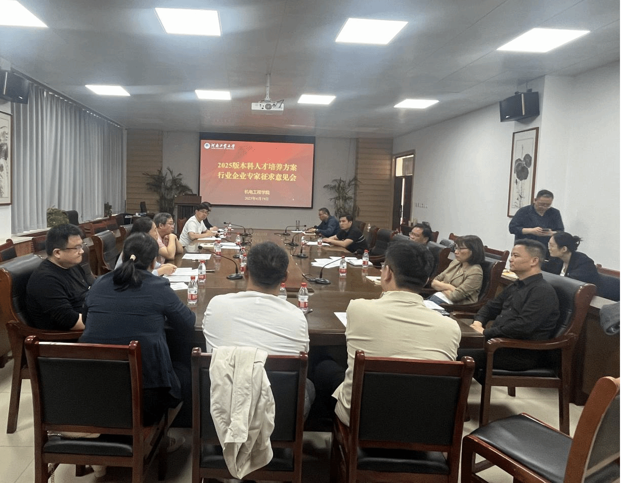 于2025年4月19日在7244会议室召开2025版本科人才培养方案行业企业专家征求意见会。会议邀请了河南金谷实业发展有限公司、郑州万谷机械有限公司、华川新能源、宇通客车股份有限公司、郑州力威环保有限公司、中原工凤凰体育