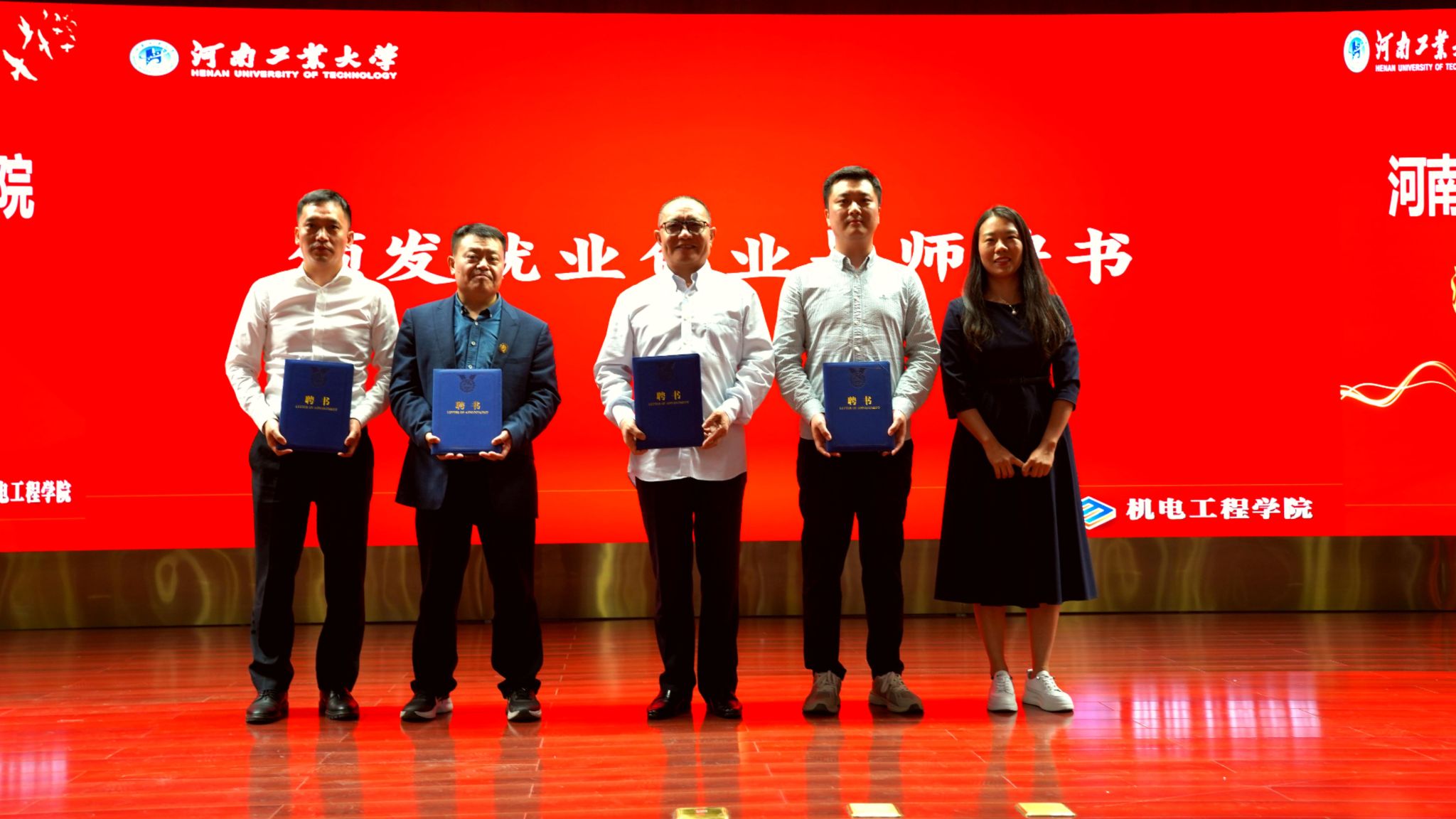 最后,院党委副书记张东霞为王伟、李留纪、王建勋、任学良、刘晓东等五位校友颁发就业创业导师聘书。