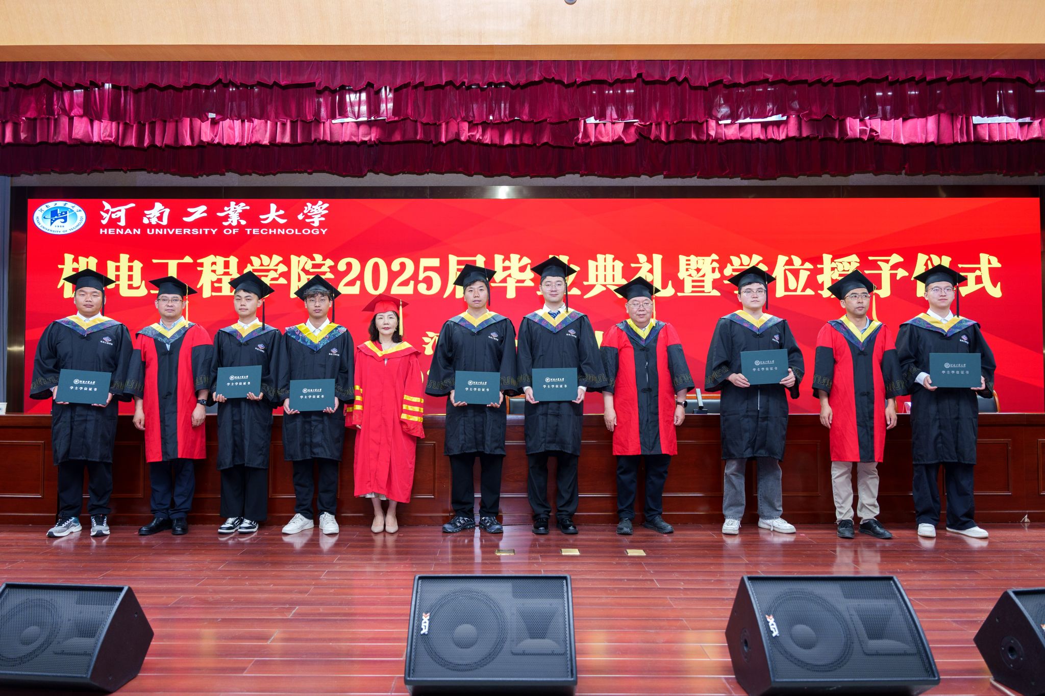 在庄严的国歌声中,毕业典礼正式开始。张东霞宣读了省级、校级优秀毕业生名单,郭永刚宣读《关于授予2025届毕业生学位的决定》,出席典礼的领导和老师为受表彰的优秀毕业生颁发了荣誉证书。