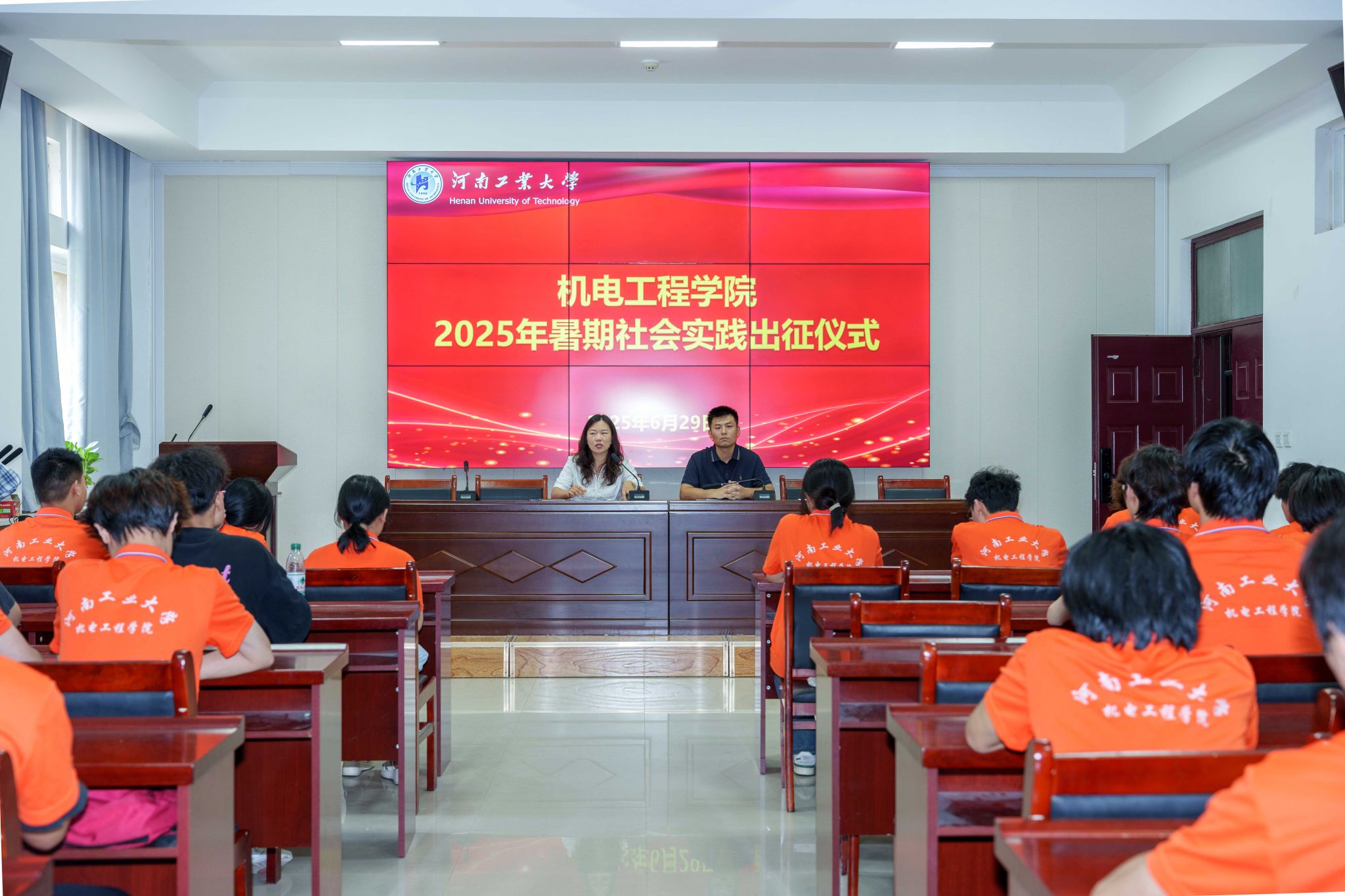 在7224捷赛厅举行2025年暑期社会实践出征仪式。院党委副书记张东霞、辅导员周贝贝及各社会实践团队队员代表参加仪式。