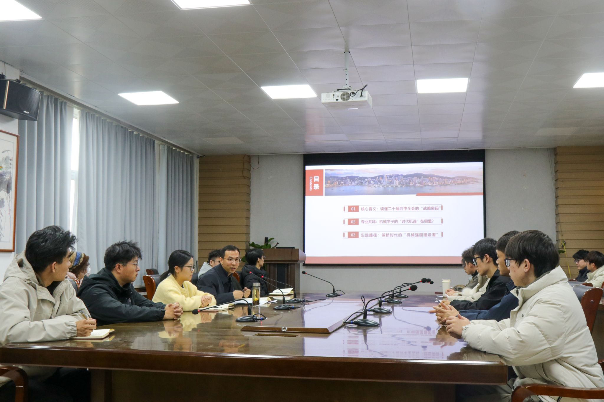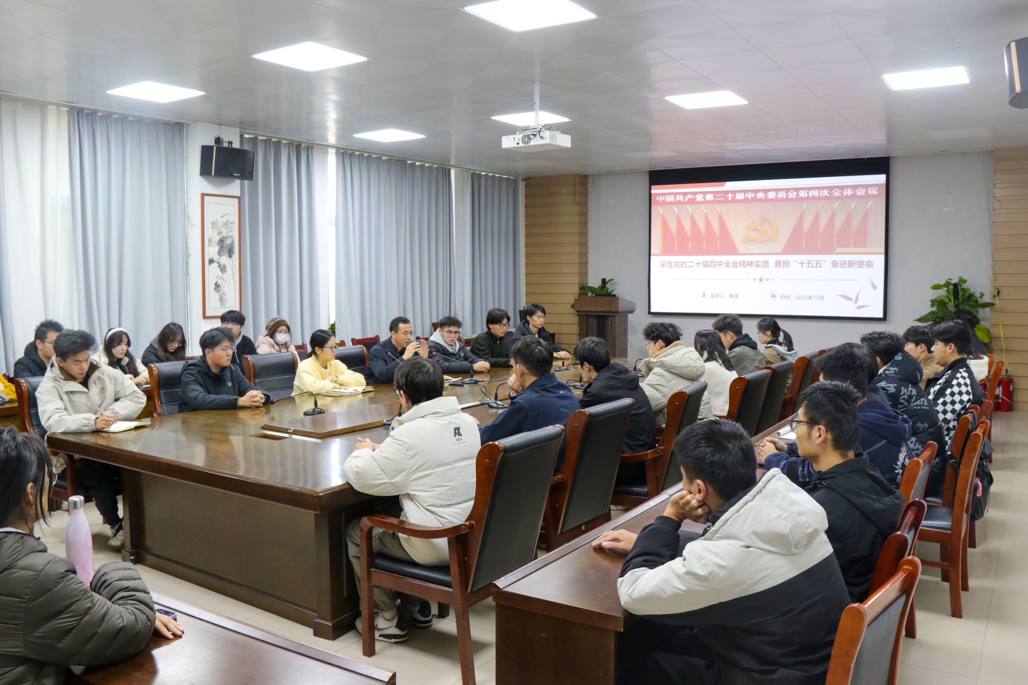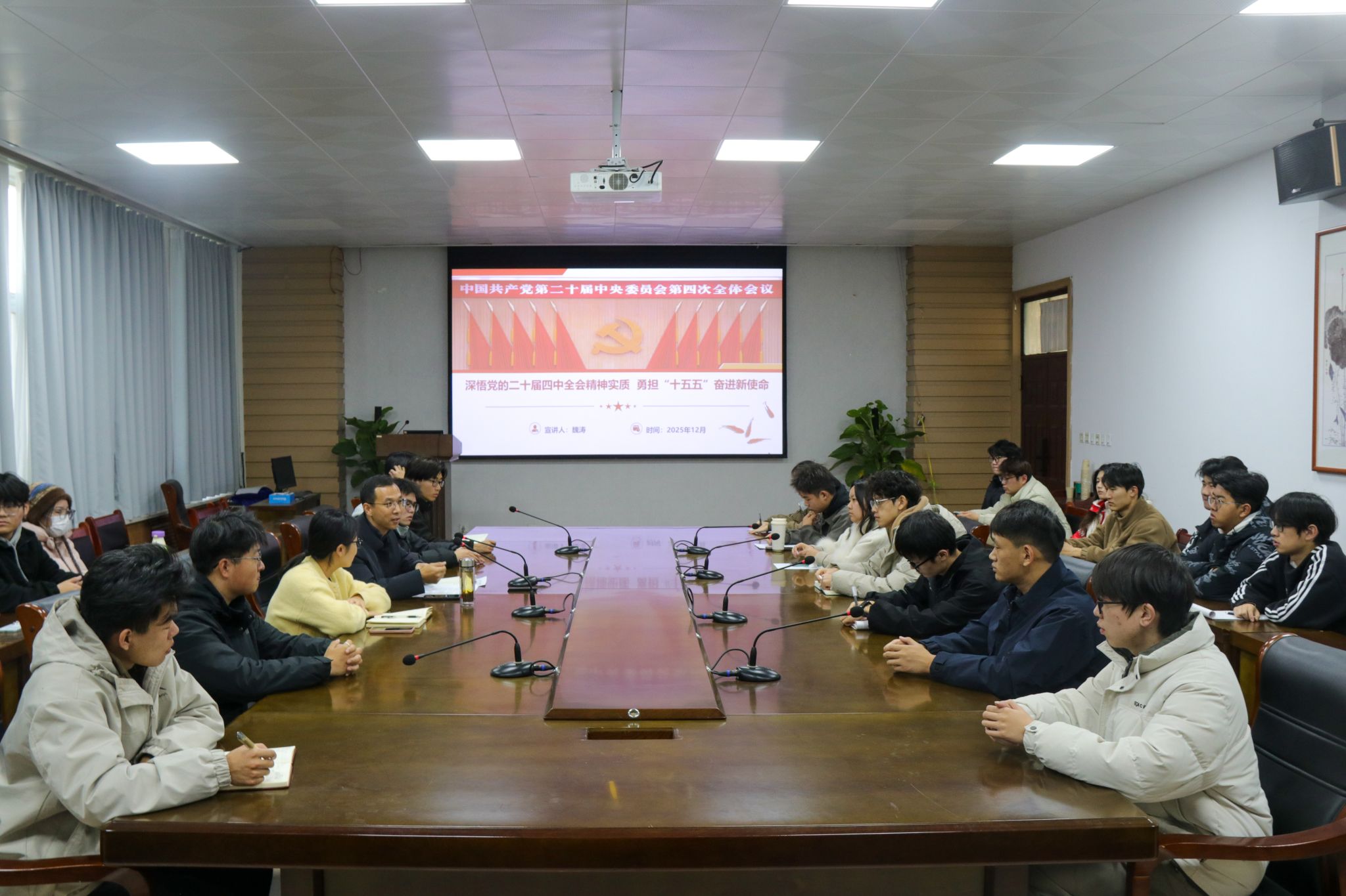 党委书记魏涛担任主讲人,团委书记丁晶晶及全体团委学生会干部全程参与,共同接受思想洗礼与精神赋能。