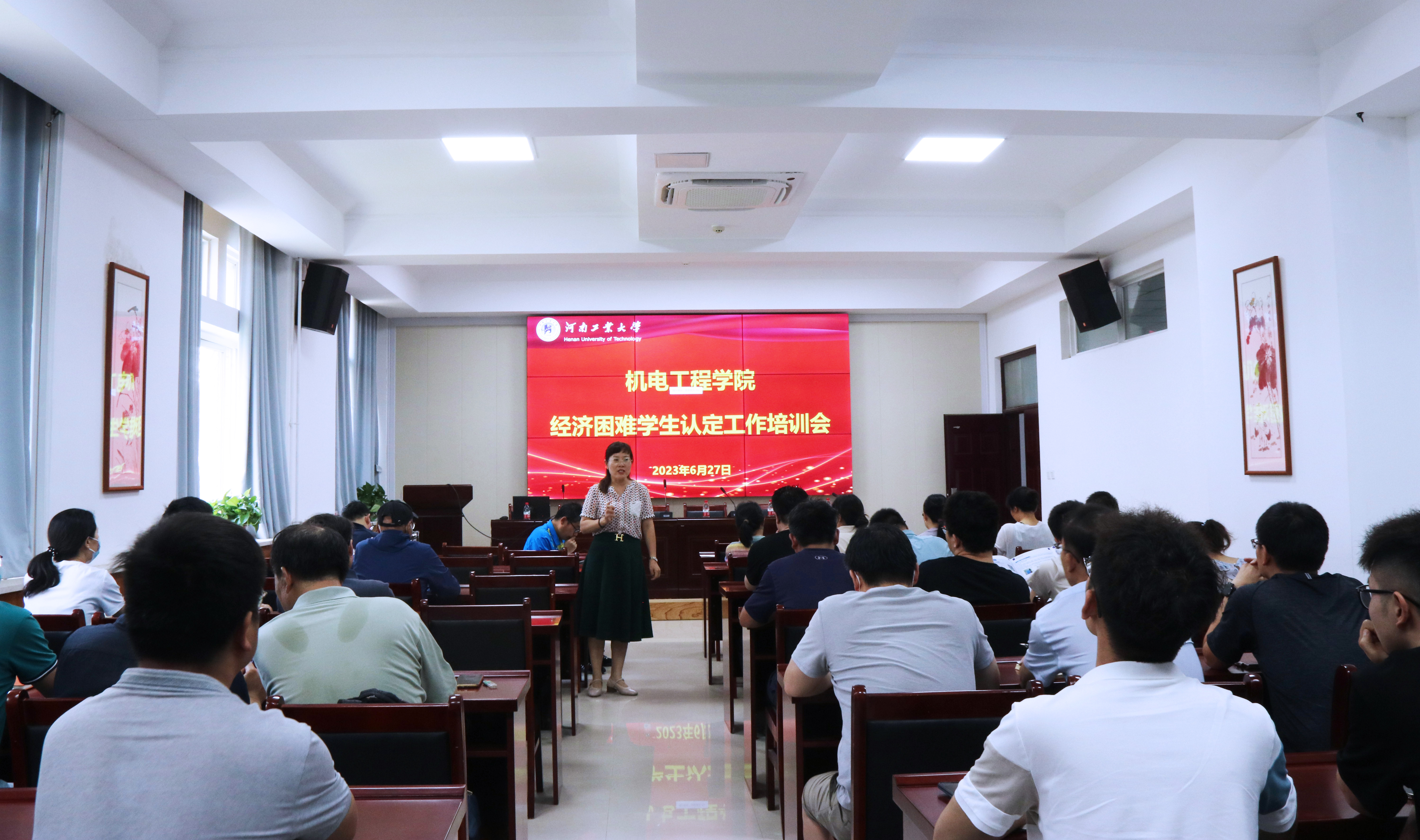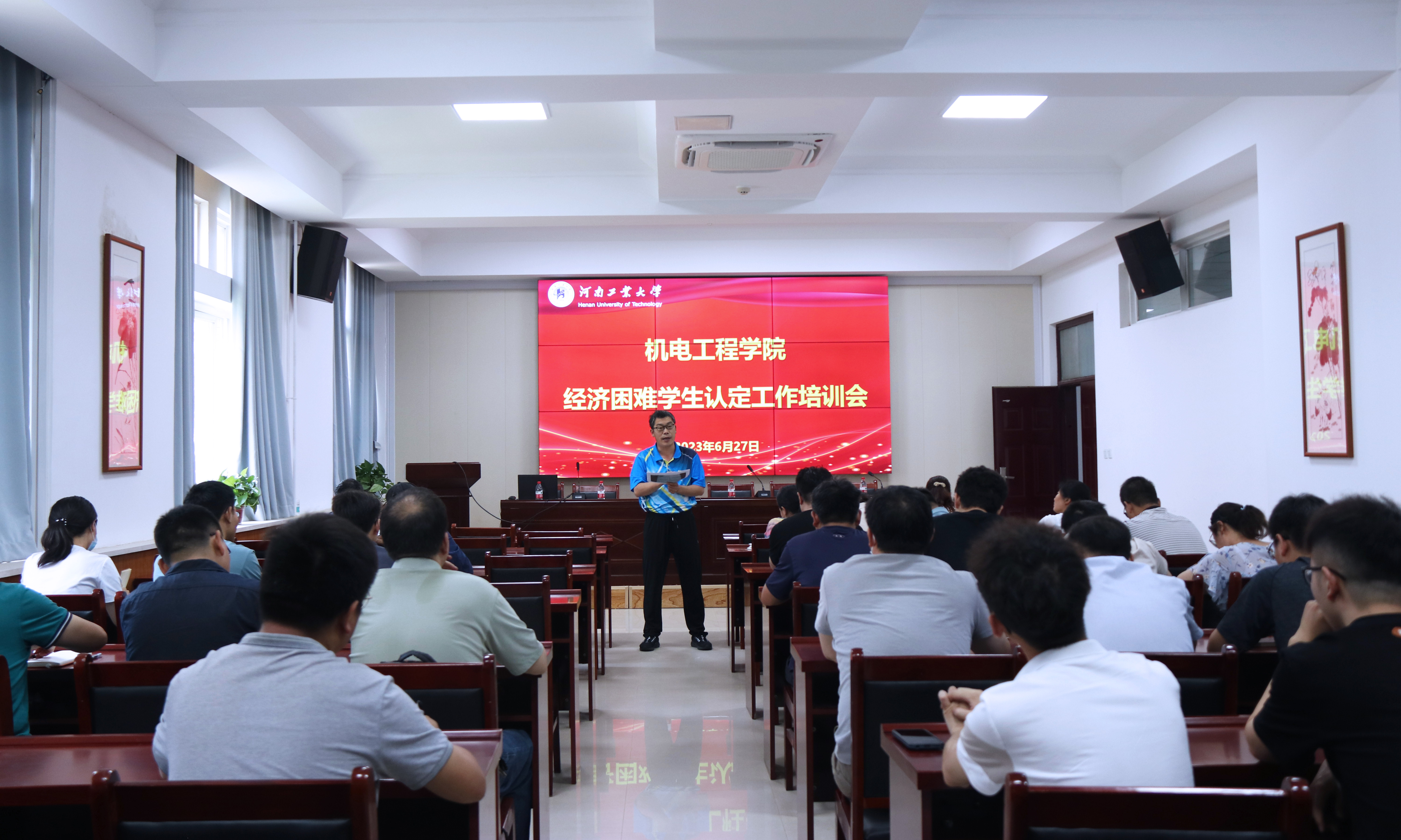 在7224捷赛厅召开家庭经济困难学生认定工作培训会。院党委副书记张小彩、学工办主任刘伟杰、全体辅导员和各年级班主任参加此次培训会。