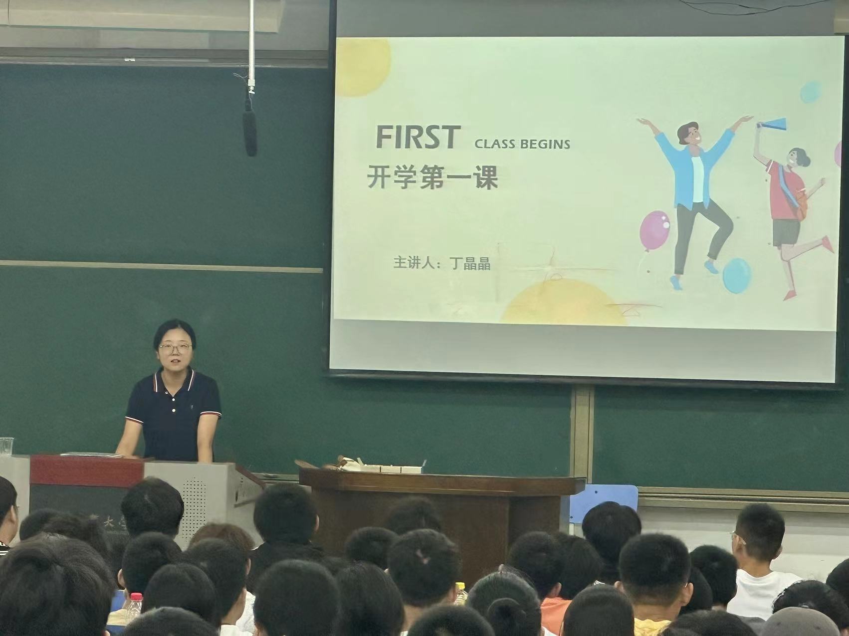 党委副书记张小彩及新生辅导员老师为全体新生进行了“开学第一课”教育。围绕理想信念、职业生涯规划、诚信教育、心理健康、防范宗教渗透等内容,引导同学们树立正确的世界观、人生观、价值观,确立新目标,制定新计划,畅想新未来