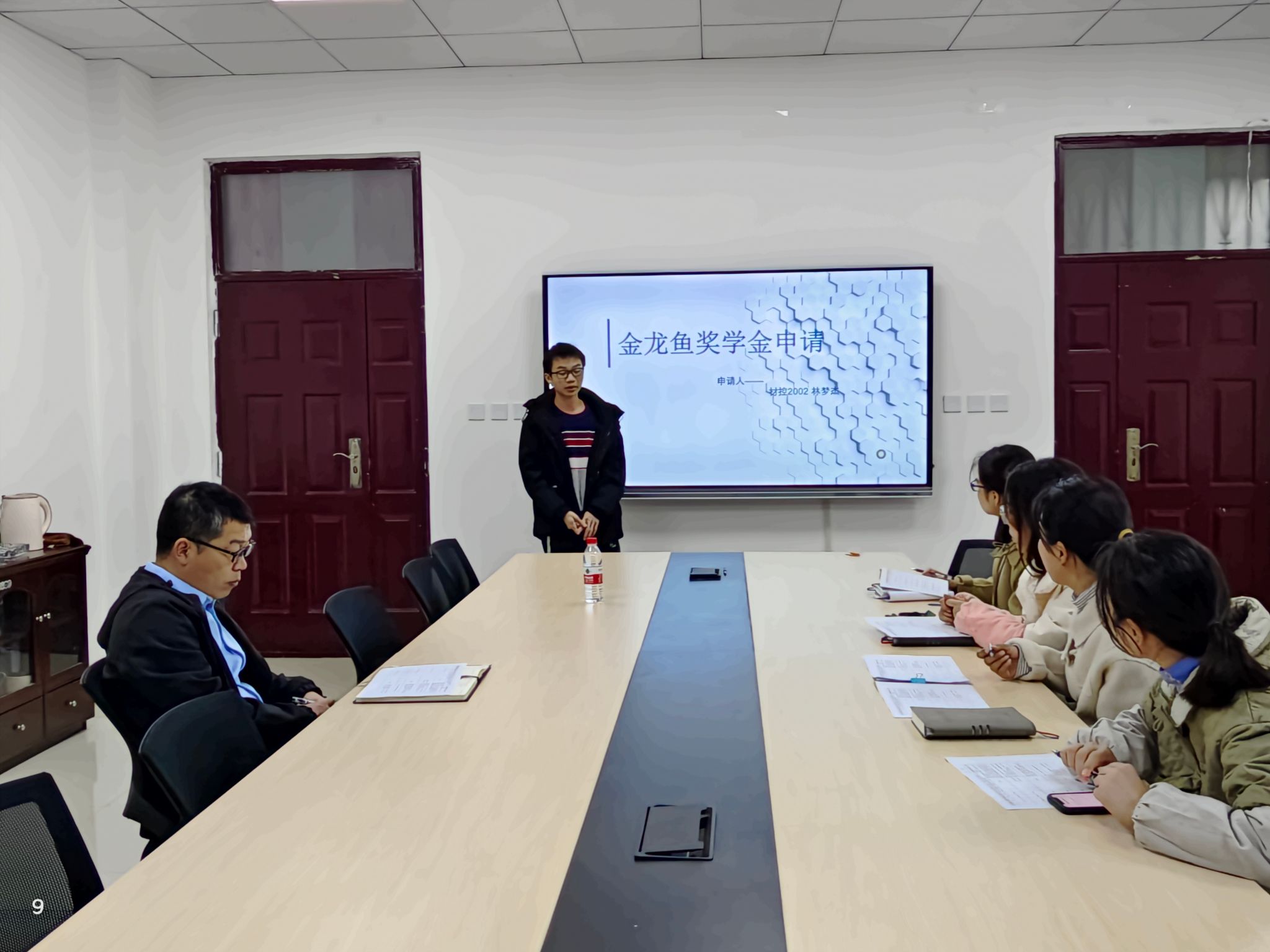 奖助学金评审工作领导小组初步评定与筛查,共推荐8名同学参加本次金龙鱼奖学金评选答辩。答辩现场,按照抽签顺序,每位同学以PPT的形式从个人基本情况、思想品德、学习成绩、实践活动、科研竞赛等方面进行了汇报,并对评委老师提出的问题进行了回答。整场答辩会井然有序且紧张活泼,为参评学生创造了充分展示自我的机会,也为其他学生树立了学习的榜样,激励他们善学习、敢创新、勇实践,注重提高自身综合素质,不断提升自我。