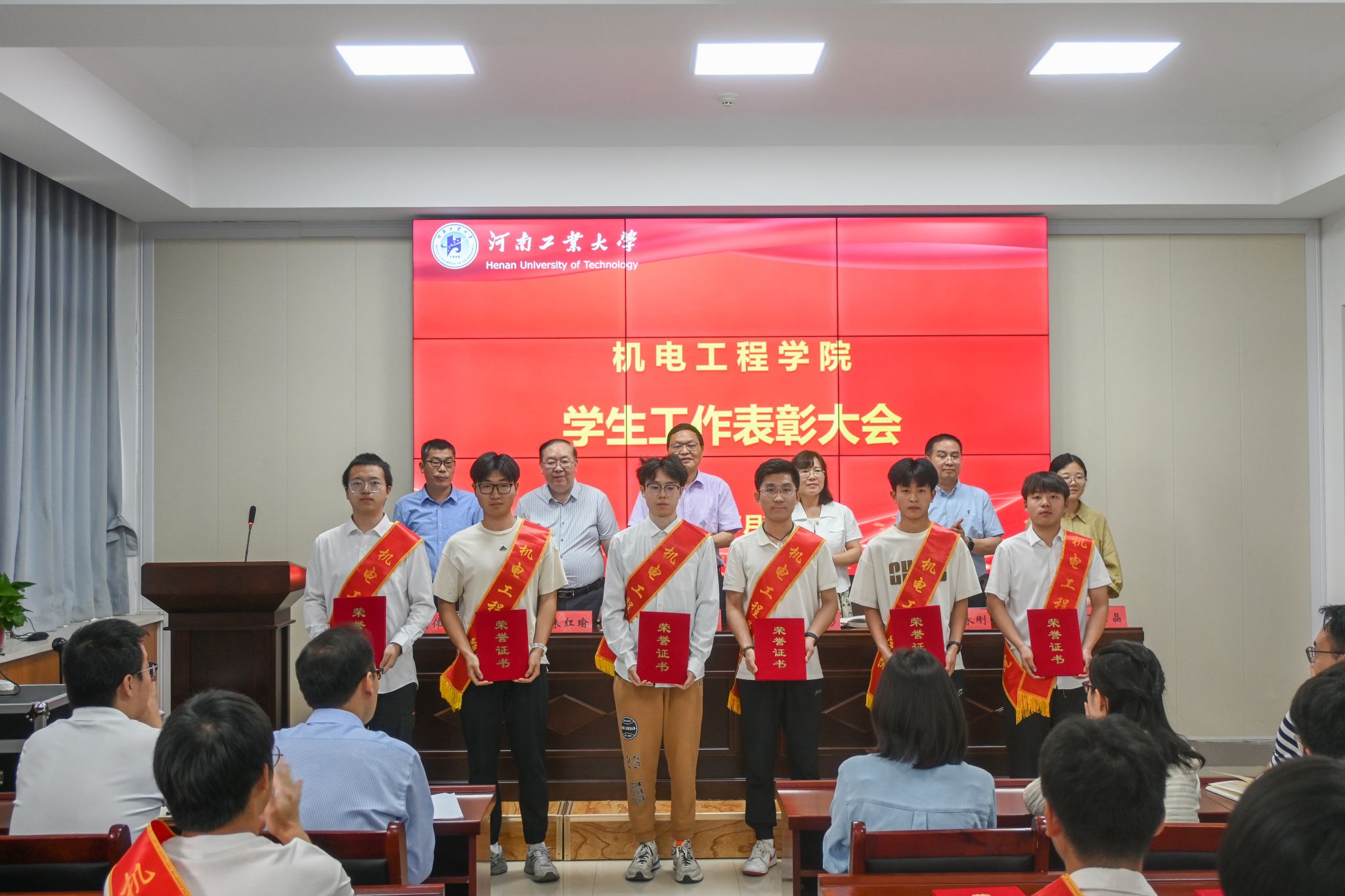 先进个人的决定》。对校先进班集体、五四红旗团支部、十佳优良学风标兵、十佳自强标兵、十佳创新创业标兵、三好学生、优秀学生干部、优秀共青团干部、优秀共青团员及优秀运动员、教练员、志愿者和通讯员等荣誉称号获得者进行了表彰,与会领导为受到表彰的先进集体和先进个人颁发奖状并合影留念。