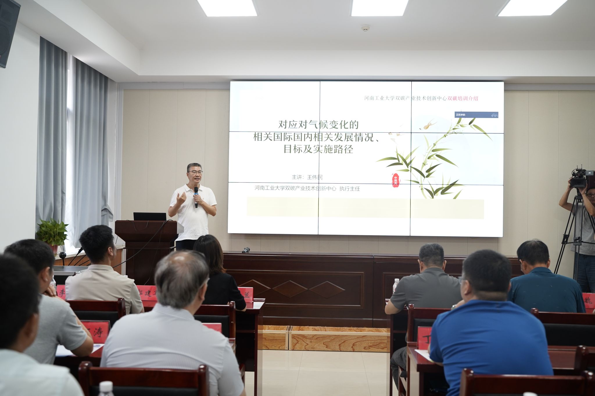 校长李闯向与会者介绍了即将开设的双碳相关培训课程,包括课程内容、培训方式和报名方式等,鼓励大家积极参与,共同提升双碳领域的专业能力。
