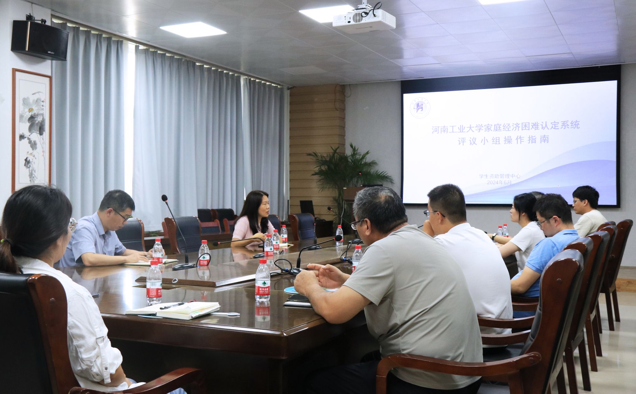 下发的通知要求,介绍了2024年家庭经济困难认定的流程和注意事项,就评议工作纪律、量化指标内容进行了详细讲解,并对家庭经济困难认定材料的提交与审核展开了说明。