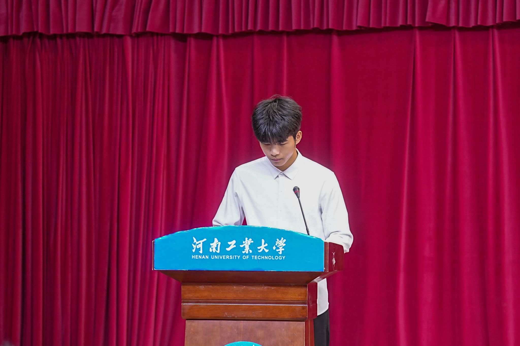 在校生代表2023级智能制造专业张鸣栩同学分享在校学习过程中收获的心得体会,他勉励新同学调整好学习生活节奏,尽快适应大学环境,不断加强专业知识学习,锻炼人格品格,实现人生梦想。