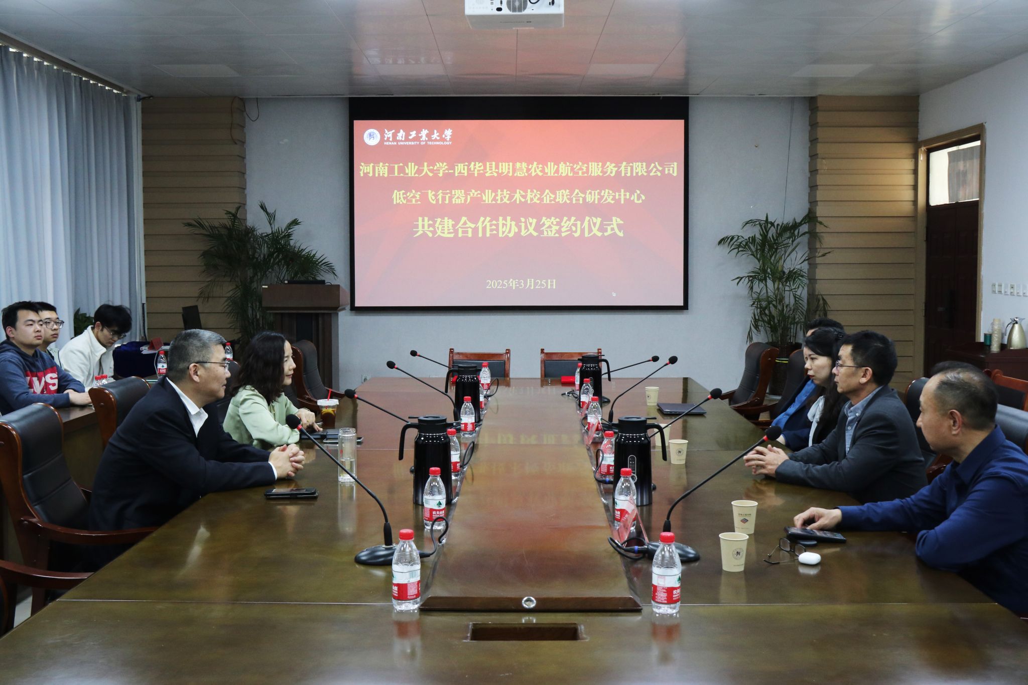 与西华县明慧农业航空服务有限公司共建“低空飞行器产业技术校企联合研发中心”合作协议签约仪式在惟明楼7244会议室举行。院长吴兰、郑州轻工业行业协会秘书长兼凤凰体育