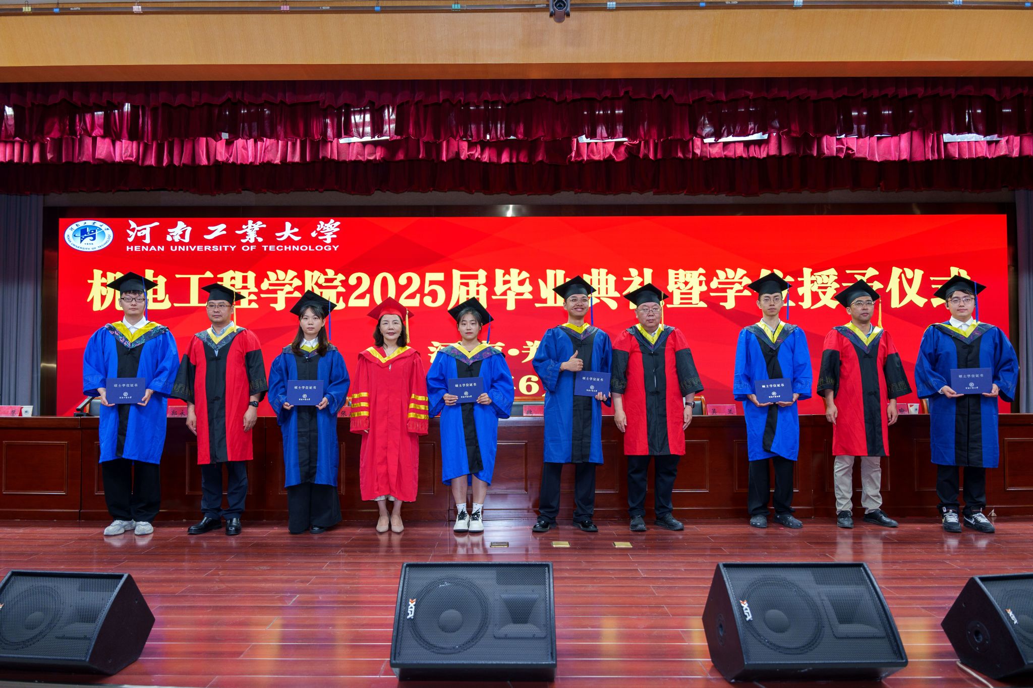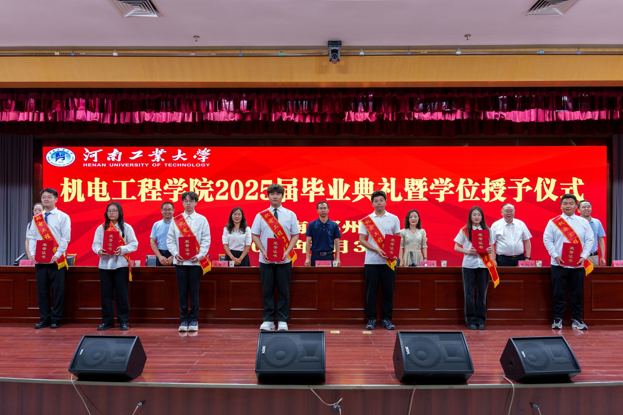 在庄严的国歌声中,毕业典礼正式开始。张东霞宣读了省级、校级优秀毕业生名单,郭永刚宣读《关于授予2025届毕业生学位的决定》,出席典礼的领导和老师为受表彰的优秀毕业生颁发了荣誉证书。