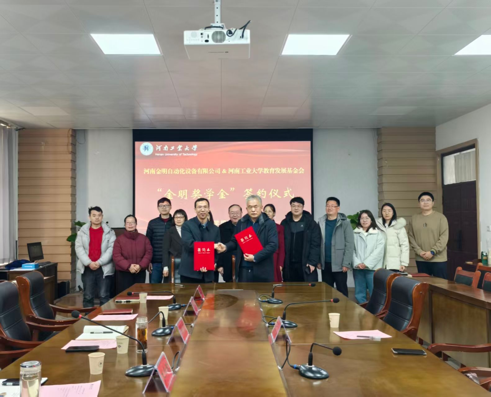 与河南金明自动化设备有限公司在7244会议室举行“金明奖学金”签约仪式。河南金明自动化设备有限公司总经理王广波,机电工程凤凰体育