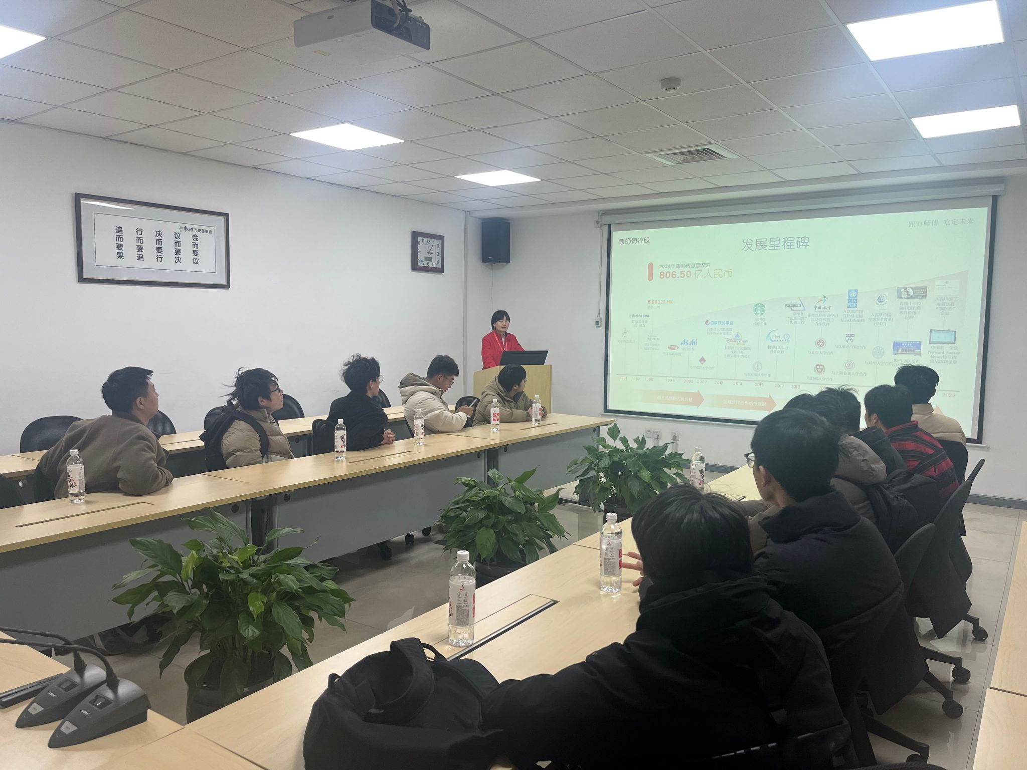座谈会上,康师傅人力资源经理田辉介绍了企业的业务布局及2026届人才储备计划,并现场开启面试通道,为同学们提供了直接与企业对话的机会。同学们携带简历依次上场,与企业技术主管及人力资源负责人面对面交流,实现了“参观即初面”的高效人才对接。