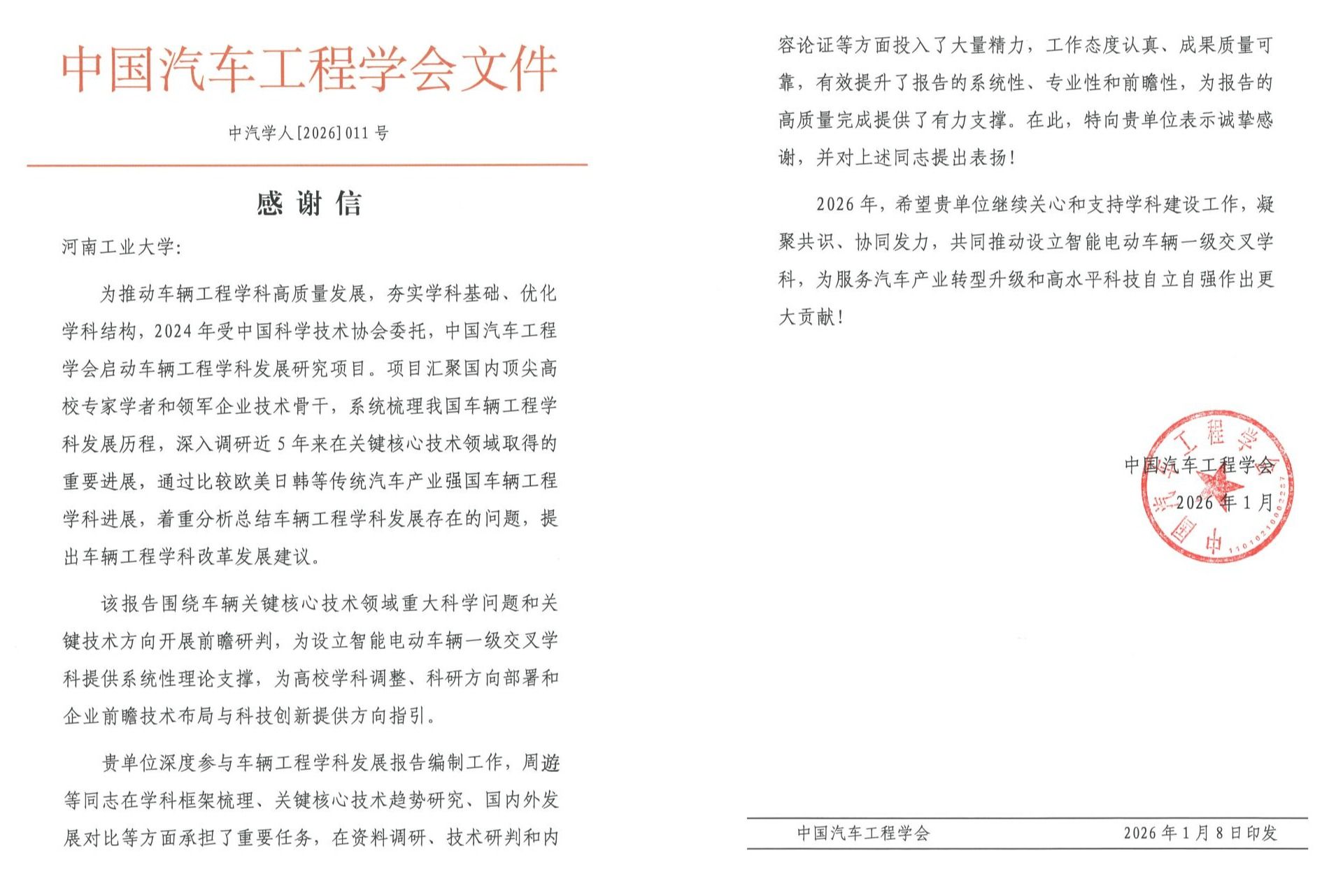 将持续深化与中国汽车工程学会的合作,紧密跟踪学科前沿动态,积极参与相关领域研究,为推动车辆工程学科的高质量发展与行业创新贡献力量。
