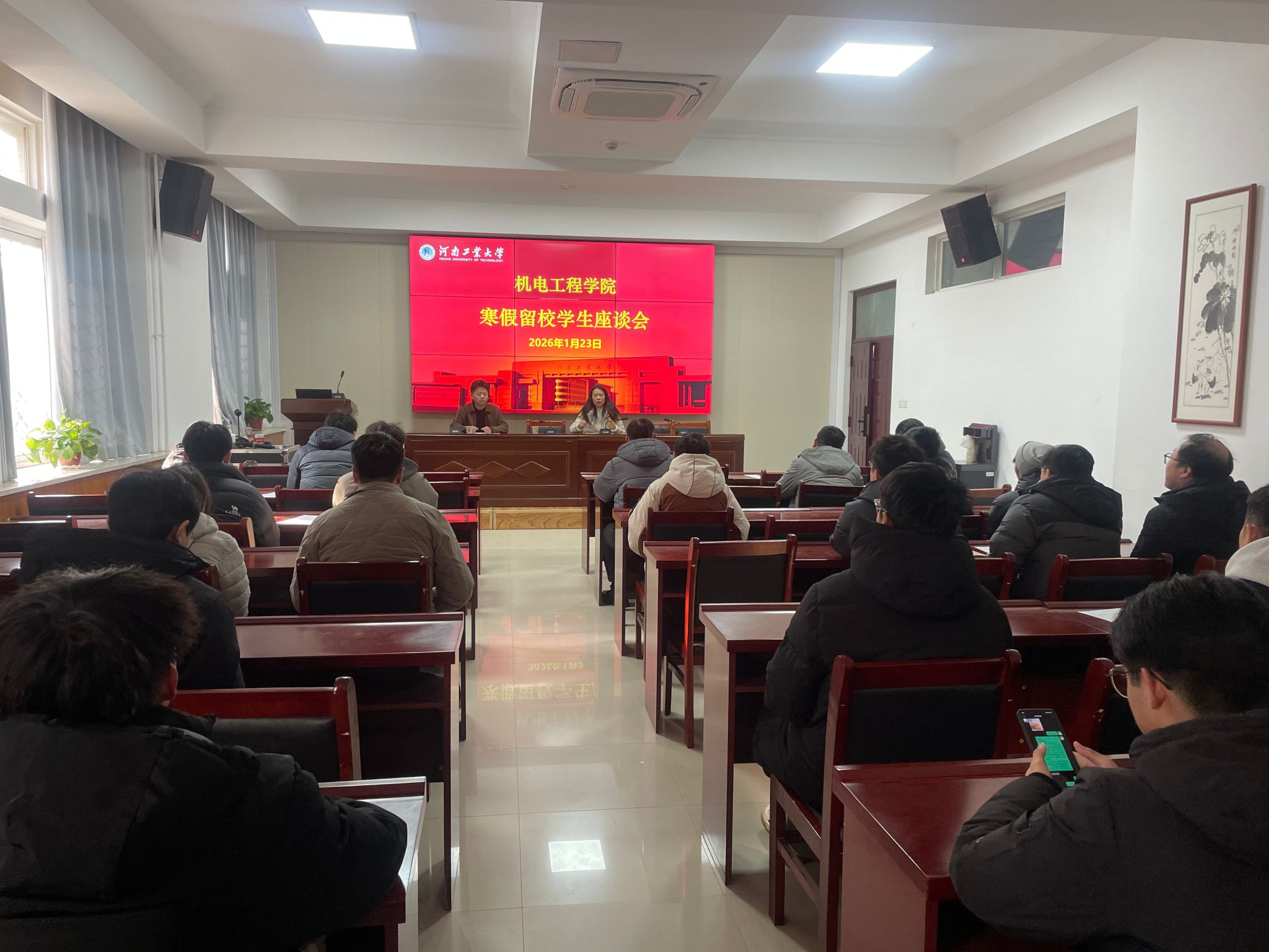 采取“线上+线下”相结合、分时段分层次的方式,召开寒假留校学生网格化管理专题会议,围绕在校纪律、实验室安全、宿舍安全等重点工作开展专题部署与安全教育。院党委副书记张东霞、各年级辅导员、全体留校学生参加会议,会议由辅导员谢亚杰主持。