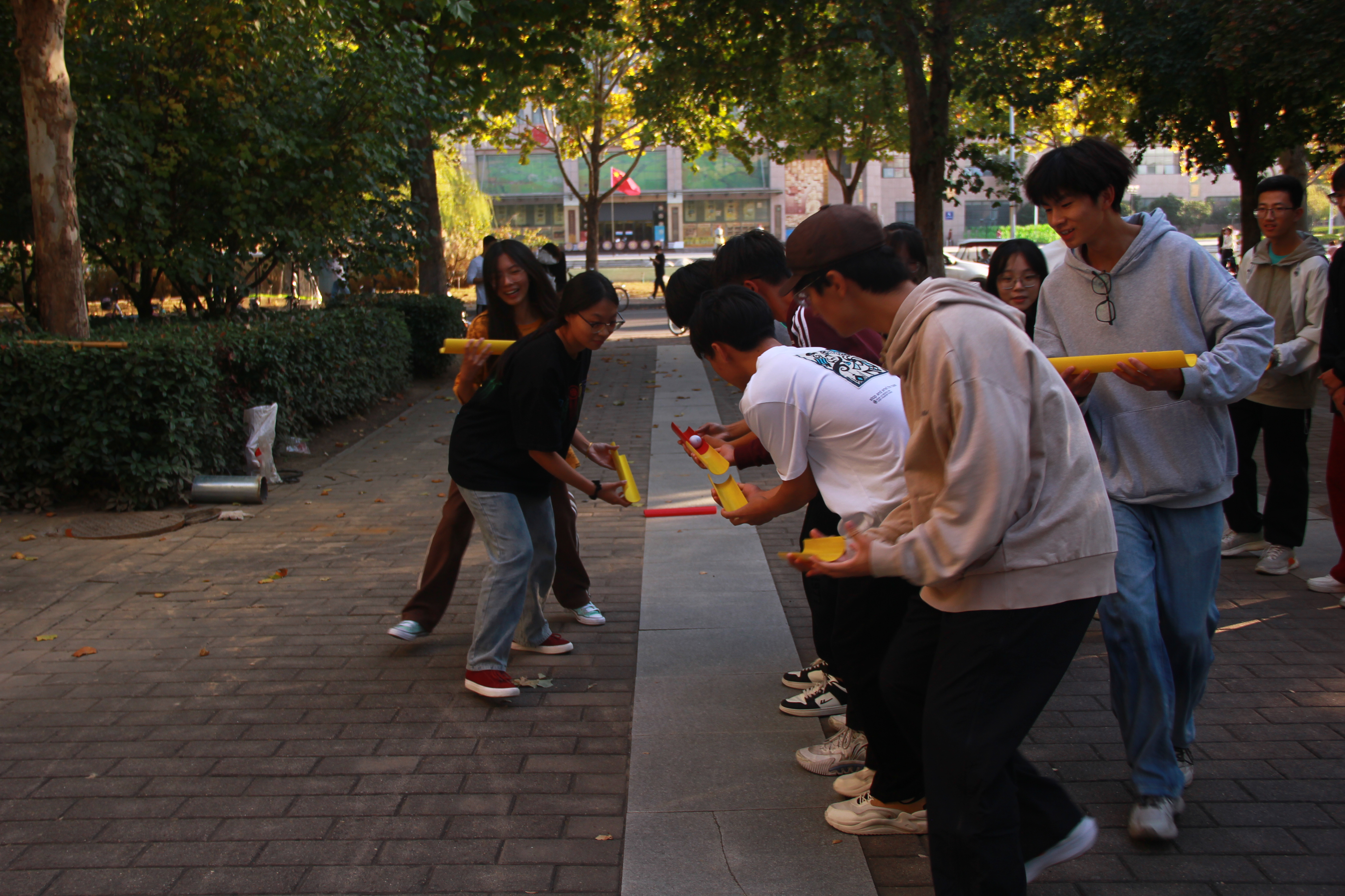 心理中心朋辈讲师团同学的带领下,精彩而又充实的素拓活动拉开了序幕。破冰热身、成员分组、团队展示,同学们迅速打破了隔阂,增进了对彼此的了解。随后,大家依次开展了“不倒森林”“能量传输”“泡泡糖”等丰富多彩的素质拓展小游戏。同学们在游戏比拼中挥洒汗水,奋勇争先,激发了团队合作意识和奉献意识,增进了信任感和集体荣誉感。整场活动充满了欢声笑语,同学们在沟通协作中敞开心扉,释放压力,放飞自我,净化心灵。