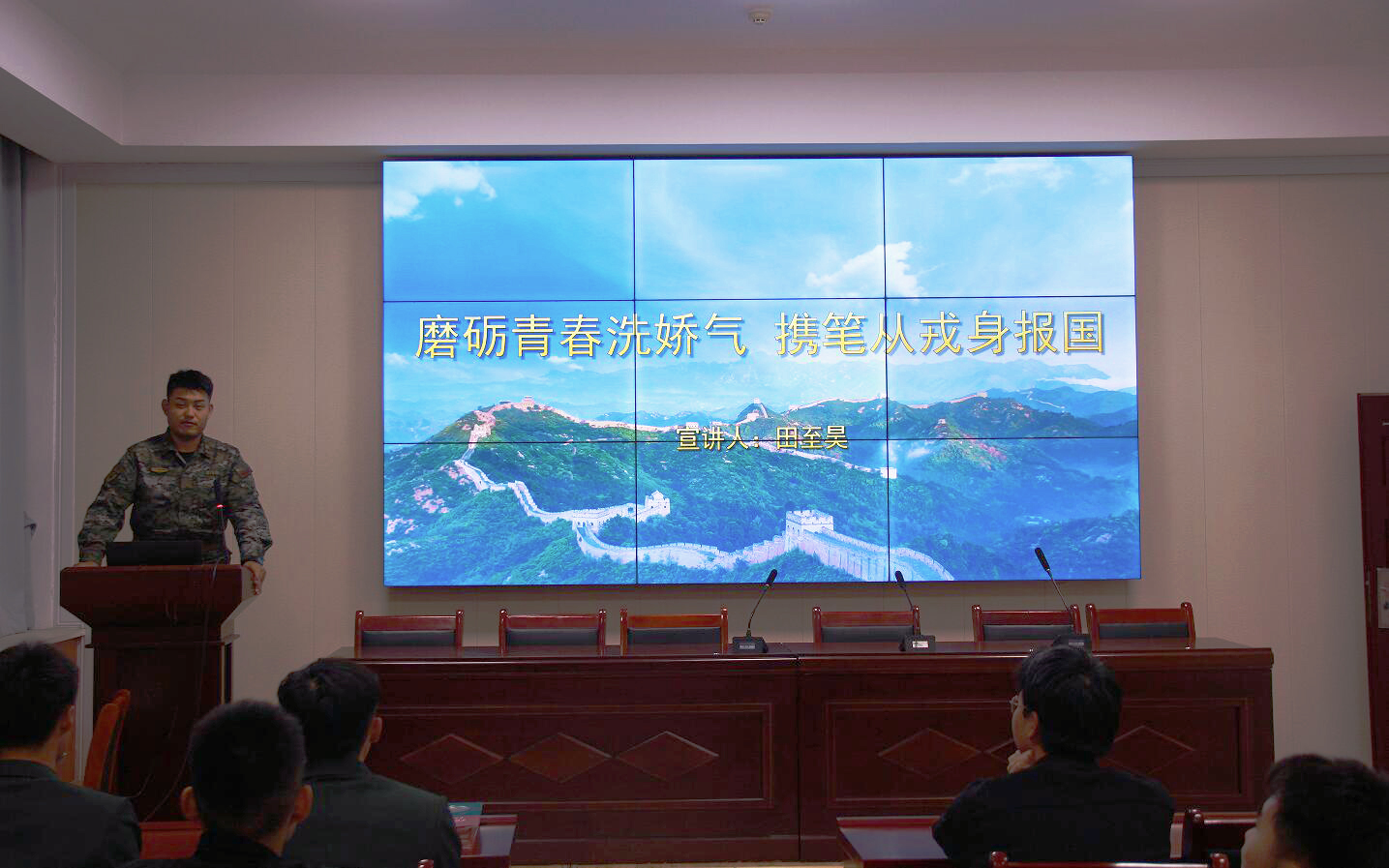 宣讲团成员刘钰锴说明了参军入伍的必要性和重要性,详细讲解了参军入伍在升学考学、就业上岗、考公考编等方面的政策;田至昊分享了新兵连期间的有趣经历,并表示参军入伍是大学生规划的一个重要转折点,是更强大的勇气和毅力的体现,是投身军营,提升自我的很好途径。周军顺从为什么当兵、当什么样的兵和参军的收获等几个方面向同学们展开分享,他强调大学生们要有时代责任,要积极为祖国的国防事业和军队现代化建设贡献青春力量。交流互动环节中,同学们踊跃提问,宣讲团成员耐心细致的进行了回答。