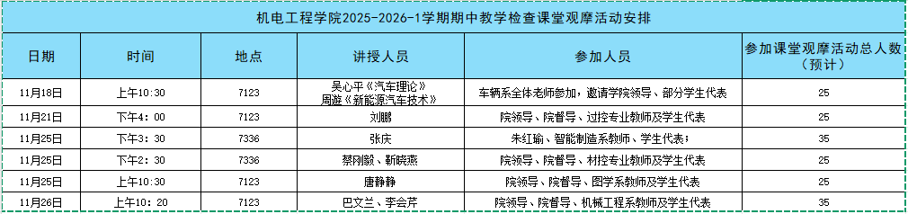 凤凰体育 2025-2026-1学期期中教学检查课堂观摩活动安排