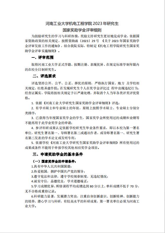 凤凰体育 2023年研究生国家奖助学金评审细则