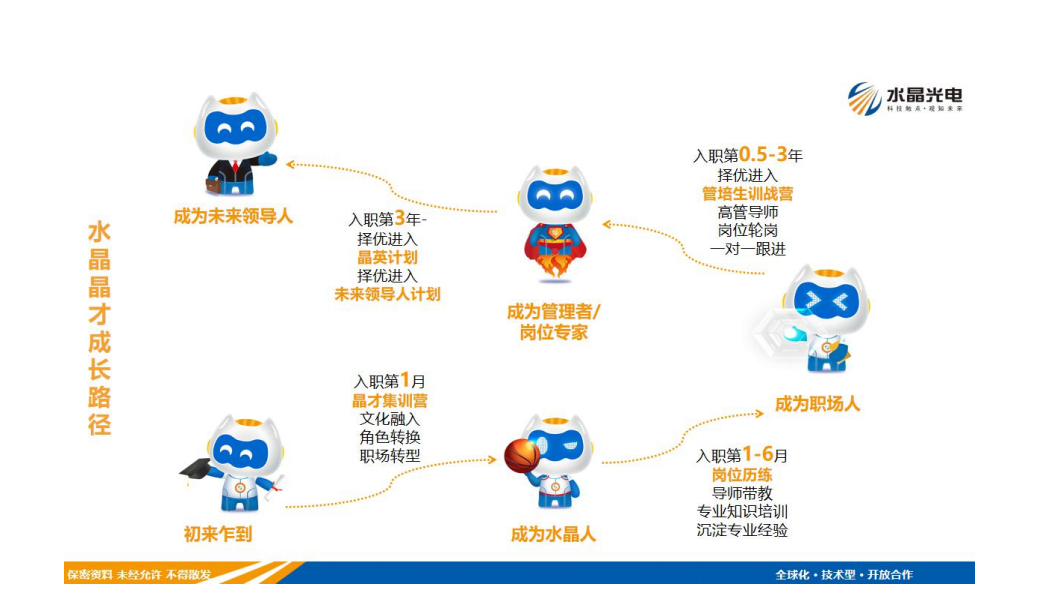 1、“晶才计划” 围绕成为“水晶人、职场人、专业人”这一目的,公司持续开展针对应届毕业生 的培养计划,成为公司未来持续健康发展的潜在力量。