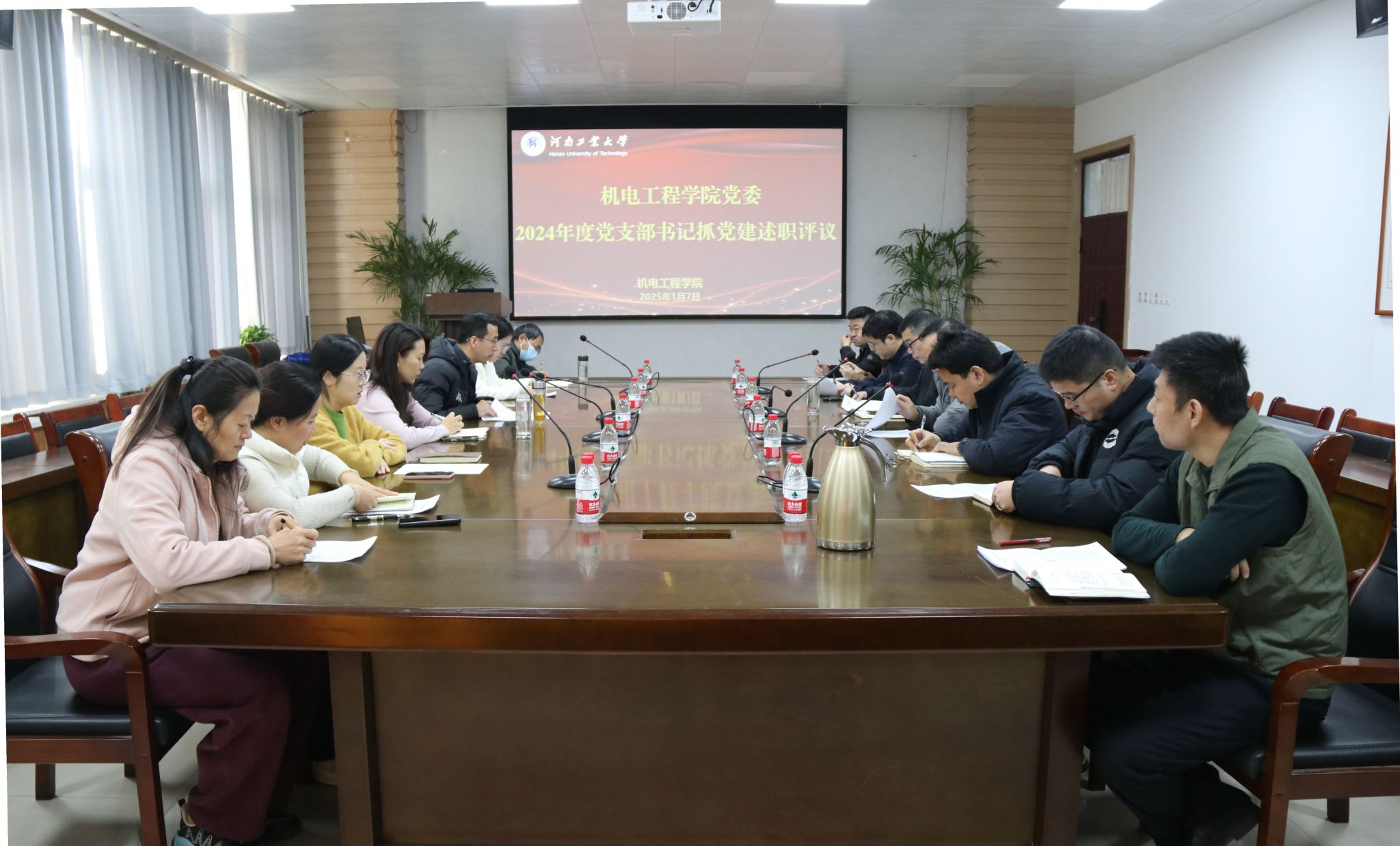 会上,魏涛强调了述职重点内容与原则。9位教师党支部书记、5位学生党支部书记依次从支部基本情况、履职情况、存在的问题、下一步工作计划和措施等几个方面进行了总结汇报。魏涛对各支部2024年党建工作进行了集中点评,他充分肯定了大家在过去一年中所取得的成绩,并对2025年工作进行了部署和要求:一是创新工作形式,提升工作实效;二是增强联络沟通,凝聚党建合力;三是对标样板支部,规范组织建设;四是加强支持保障,全面提升支部建设水平。