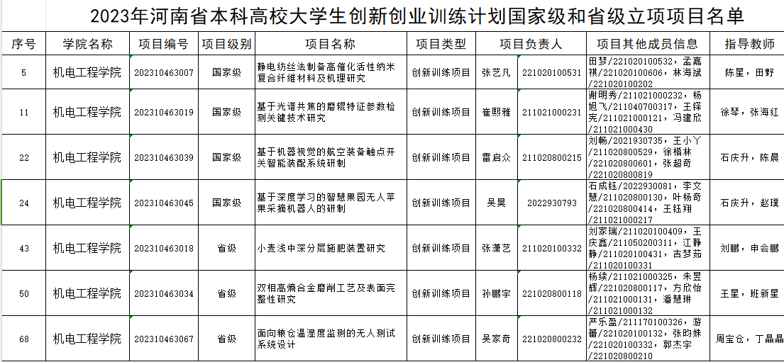 近日,根据教育部《关于公布2023年国家级大学生创新创业训练计划项目和重点支持领域项目名单的通知》(教高司函〔2023〕8号)和河南省教育厅《关于公布2023年大学生创新创业训练计划项目名单的通知》,凤凰体育