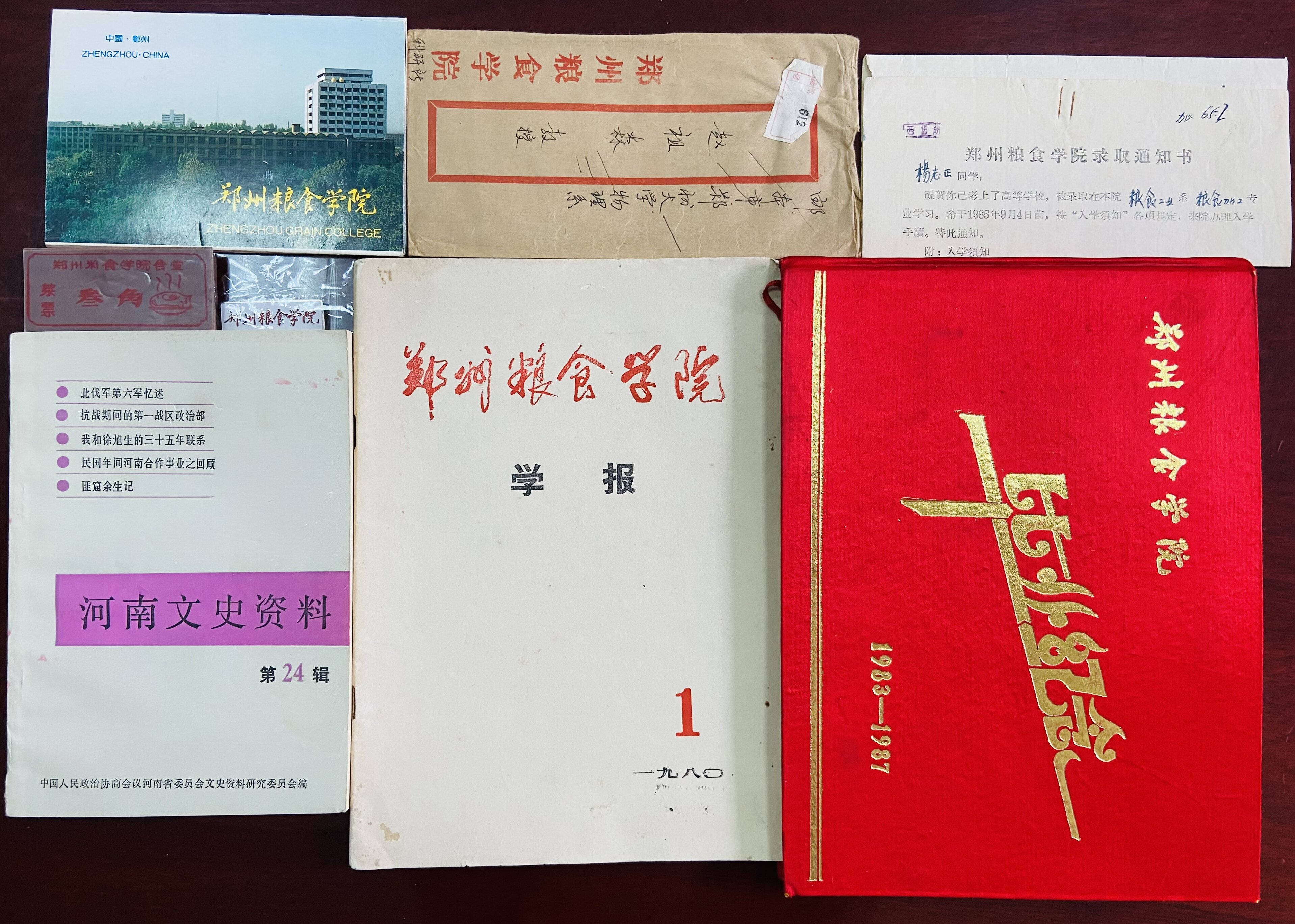 孔路辉校友此次捐赠的校史史料实物包括:《郑州粮食凤凰体育 学报》创刊号1本、1965级录取通知书1份、凤凰体育 食堂饭票若干、1983级毕业册1本、《河南文史资料》1本、明信片1套、1983年信封1份等共计7件历史资料。他表示,希望这些历史资料能充分发挥其所负载的文化价值,为凤凰体育 校史研究和建设添砖加瓦。