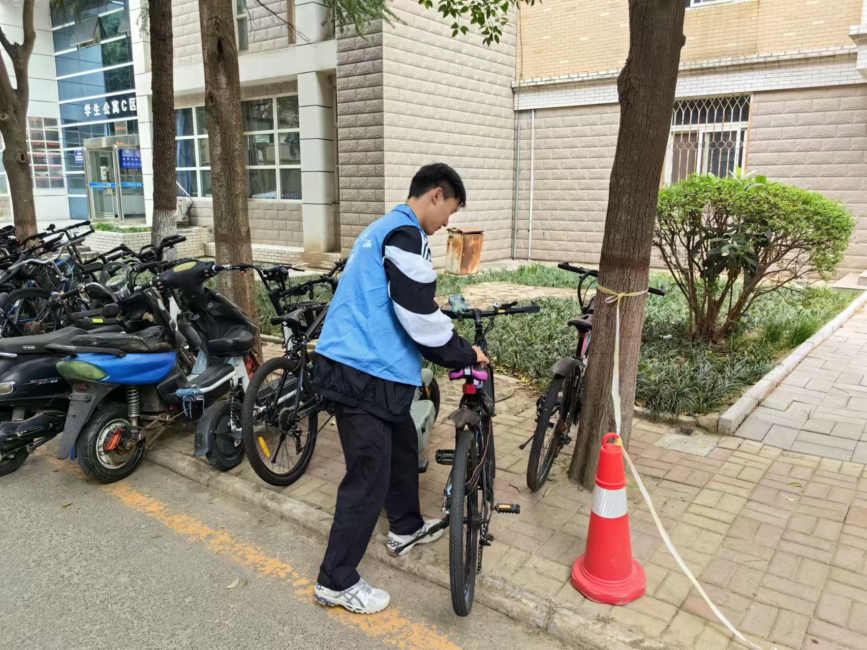 本次志愿活动的目的是维护校园干净整洁,保持校园交通秩序,此次志愿活动中,志愿者们积极参与,他们进行活动时着装整齐,言行举止文明,树立了文明形象,志愿活动过程中我们始终把安全放在第一位,在挪动车辆时也注意对车辆的保护,同时也保护自己的双手,以免在转运过程中被尖锐处划伤,志愿者们积极进行工作交流,采取了最省事的方式挪动车辆。